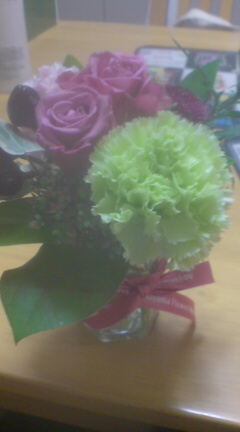 デザフェス帰りの飲み会で、お花を頂いたのでテーブルに飾ってみました♪