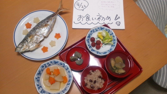 水曜日に100日を迎えたので、今日お食い初めをしてみました。