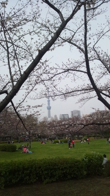 咲き始めた桜と、スカイツリーがよく見えました。